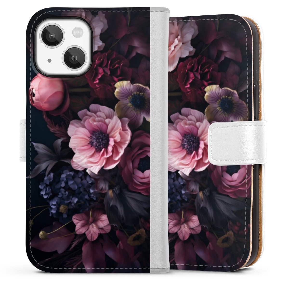 For our Sideflip Case we are using our advanced direct printing technology. The back and frontside are fully printabale, the inside of the phone bag is left unprinted. You can order the phone case without print, printed completely or also with a partial print.