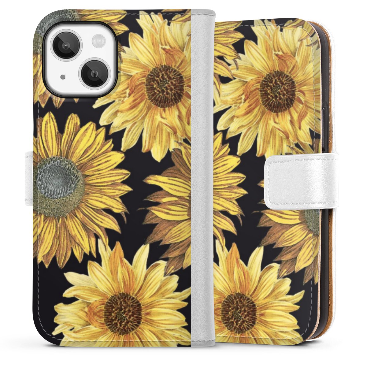 For our Sideflip Case we are using our advanced direct printing technology. The back and frontside are fully printabale, the inside of the phone bag is left unprinted. You can order the phone case without print, printed completely or also with a partial print.
