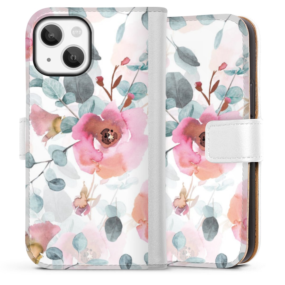 For our Sideflip Case we are using our advanced direct printing technology. The back and frontside are fully printabale, the inside of the phone bag is left unprinted. You can order the phone case without print, printed completely or also with a partial print.