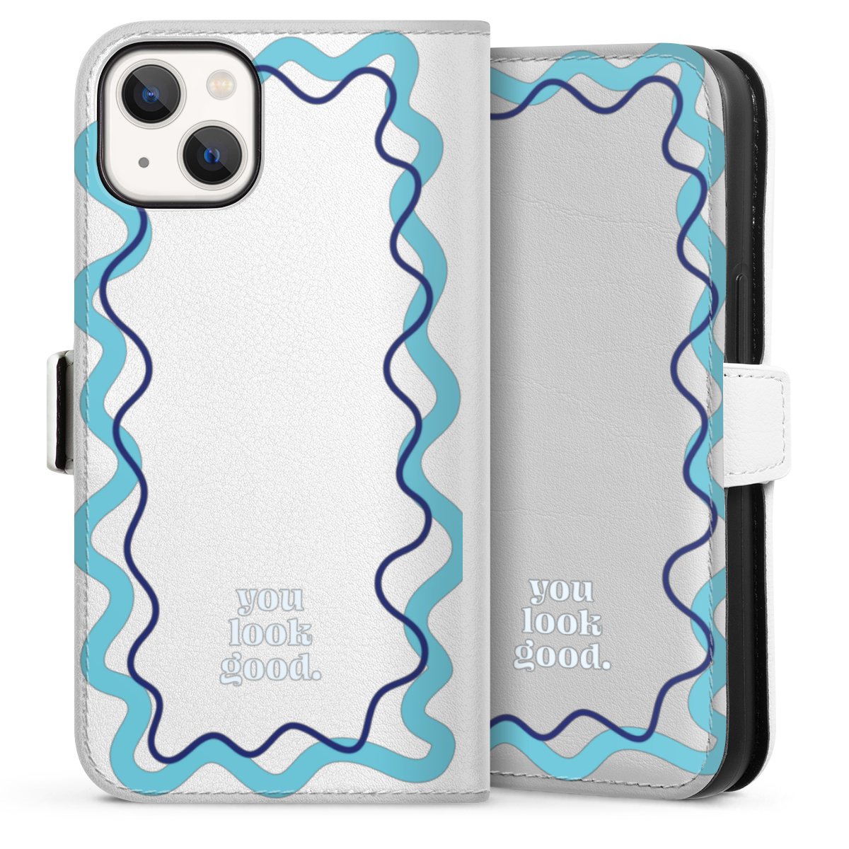 For our Sideflip Case we are using our advanced direct printing technology. The back and frontside are fully printabale, the inside of the phone bag is left unprinted. You can order the phone case without print, printed completely or also with a partial print.