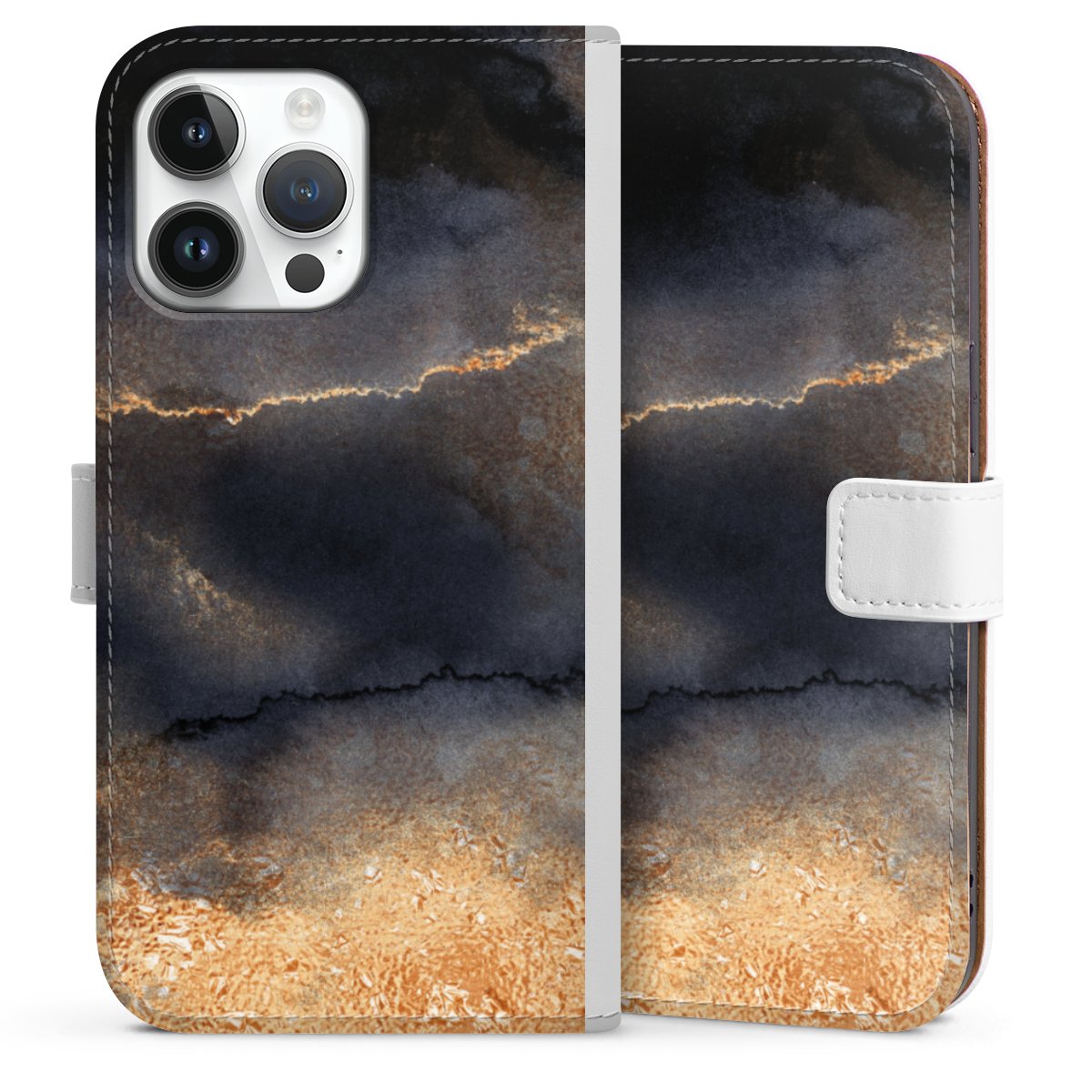 For our Sideflip Case we are using our advanced direct printing technology. The back and frontside are fully printabale, the inside of the phone bag is left unprinted. You can order the phone case without print, printed completely or also with a partial print.