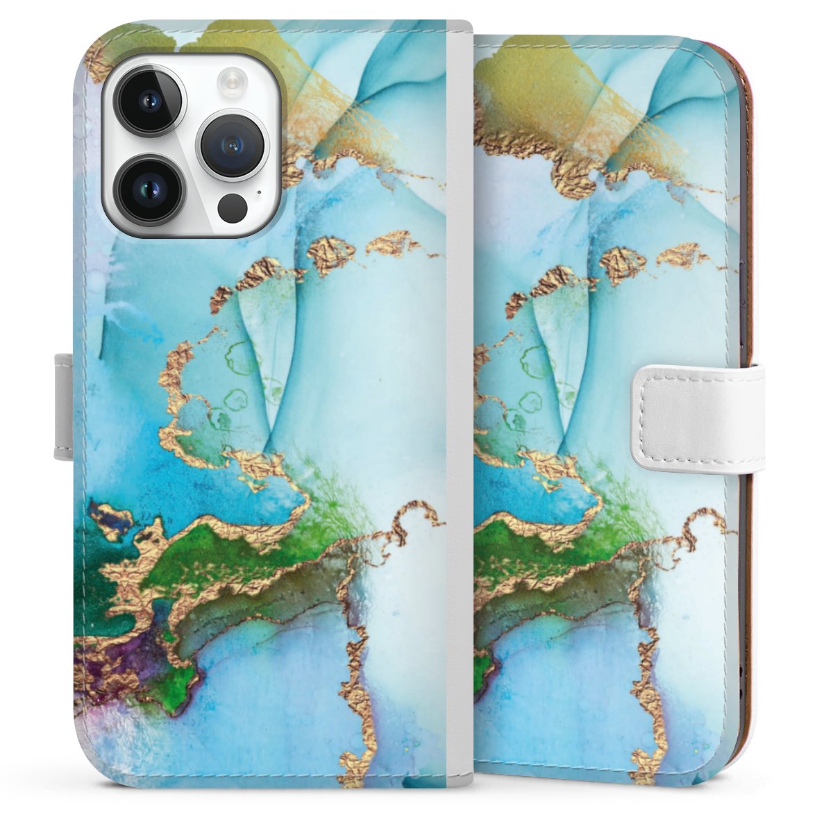 For our Sideflip Case we are using our advanced direct printing technology. The back and frontside are fully printabale, the inside of the phone bag is left unprinted. You can order the phone case without print, printed completely or also with a partial print.
