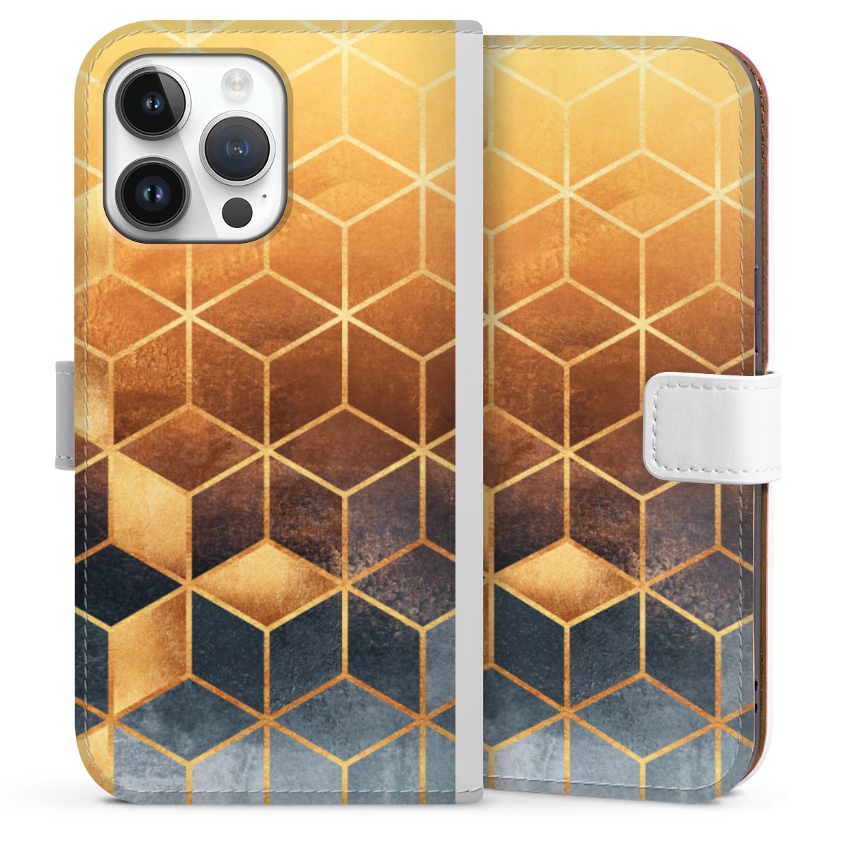 For our Sideflip Case we are using our advanced direct printing technology. The back and frontside are fully printabale, the inside of the phone bag is left unprinted. You can order the phone case without print, printed completely or also with a partial print.