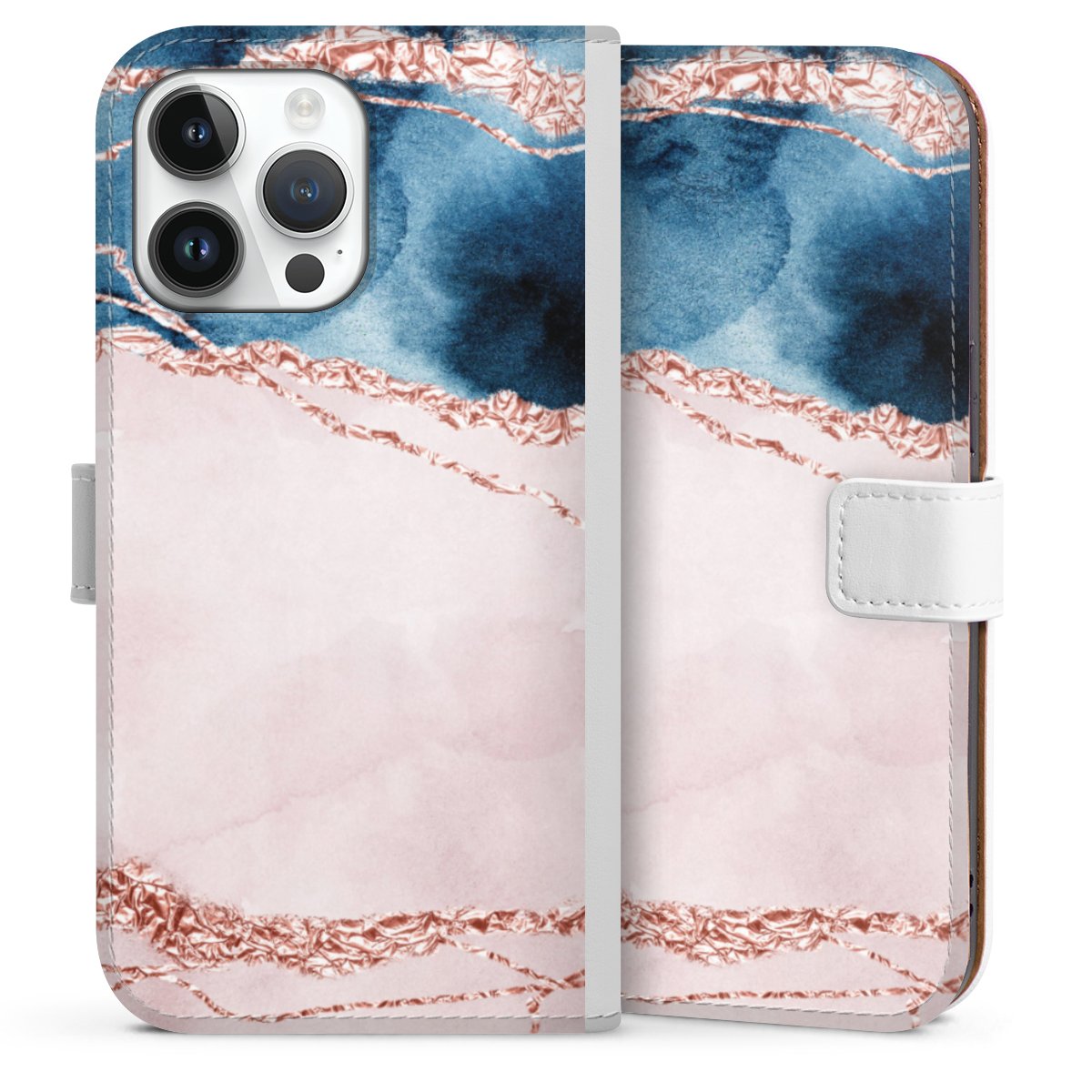 For our Sideflip Case we are using our advanced direct printing technology. The back and frontside are fully printabale, the inside of the phone bag is left unprinted. You can order the phone case without print, printed completely or also with a partial print.