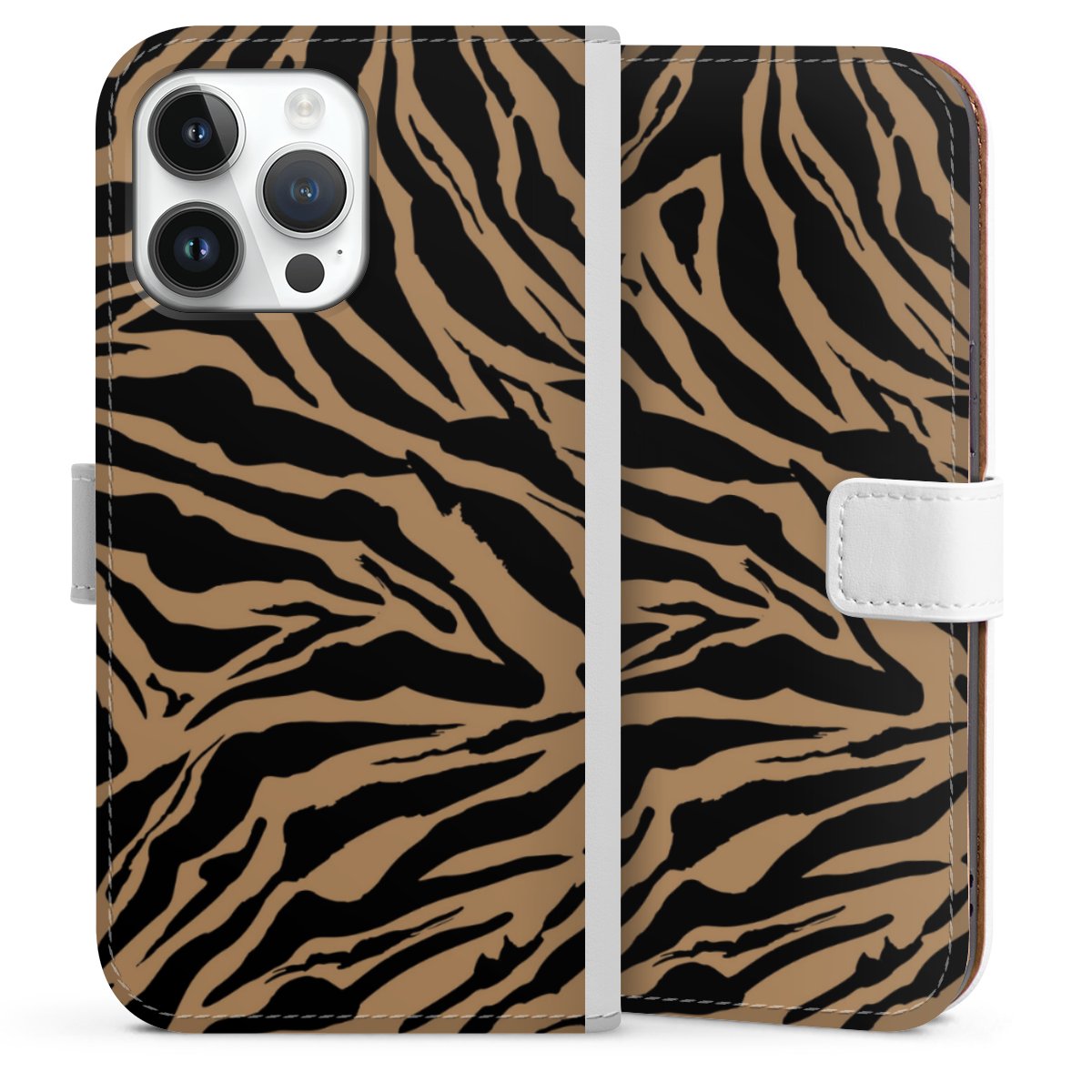 For our Sideflip Case we are using our advanced direct printing technology. The back and frontside are fully printabale, the inside of the phone bag is left unprinted. You can order the phone case without print, printed completely or also with a partial print.