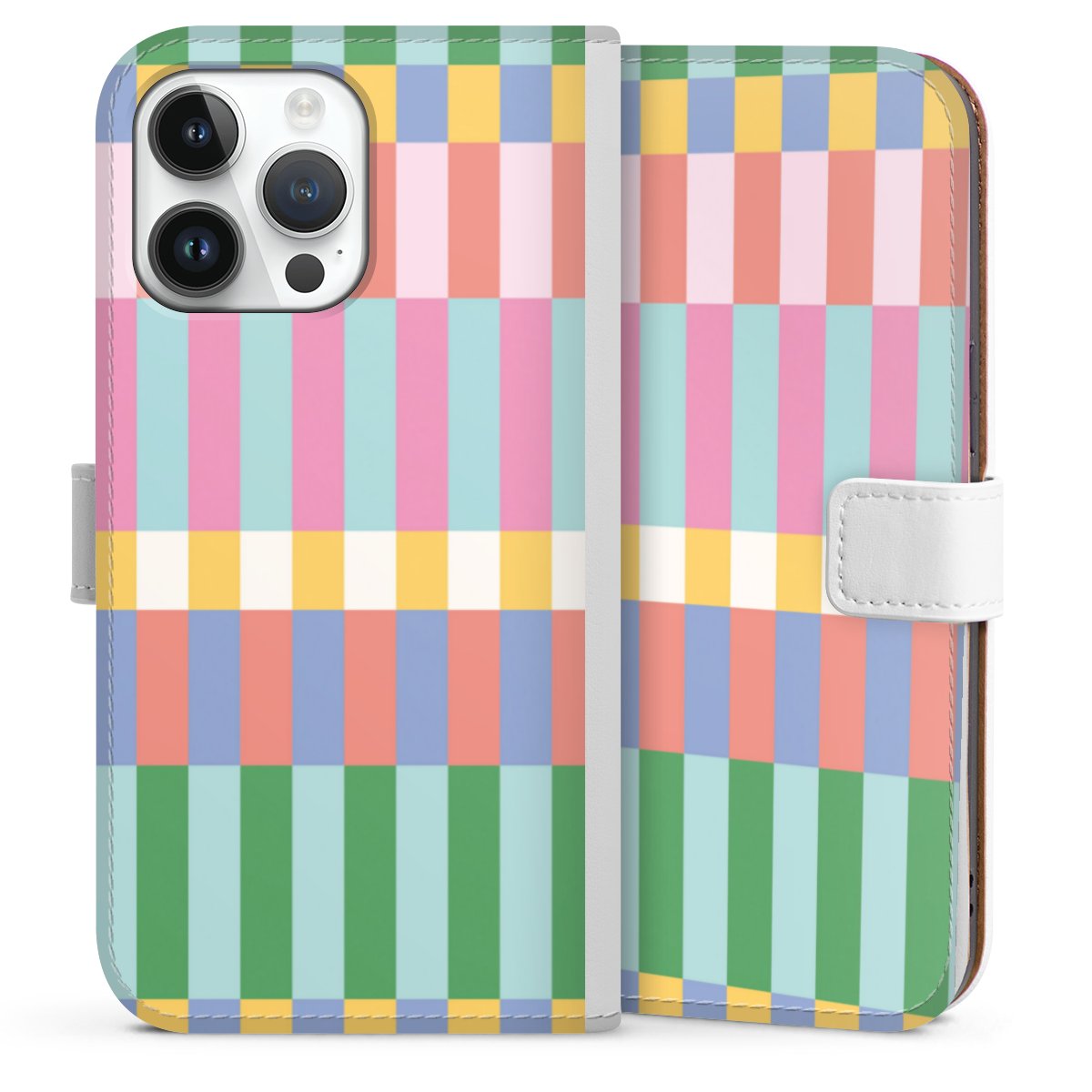 For our Sideflip Case we are using our advanced direct printing technology. The back and frontside are fully printabale, the inside of the phone bag is left unprinted. You can order the phone case without print, printed completely or also with a partial print.