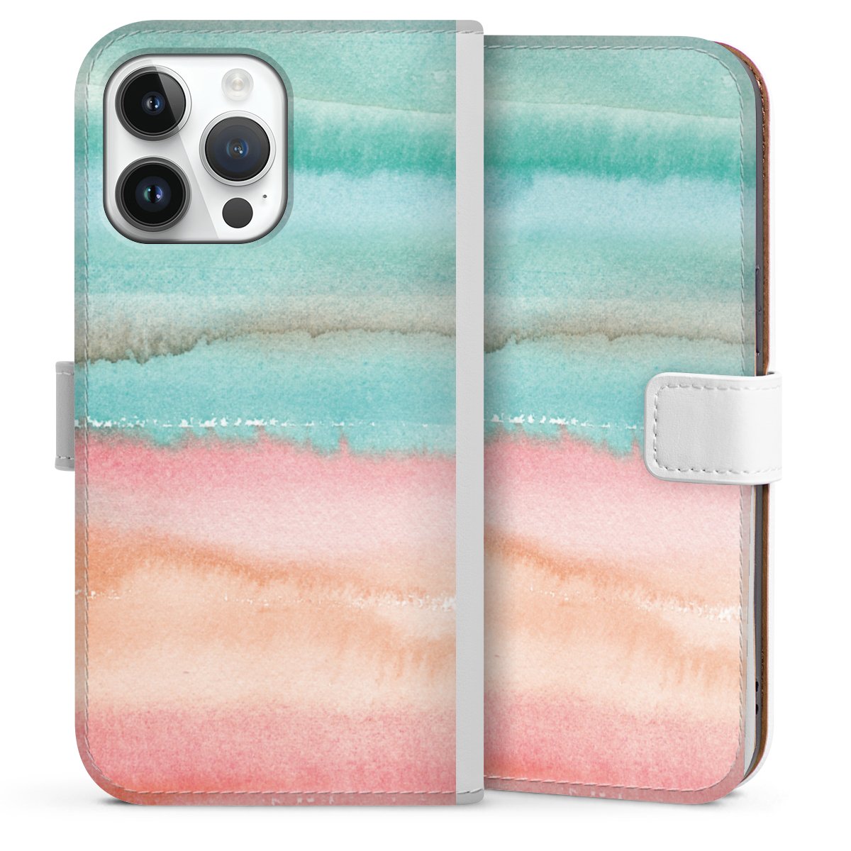 For our Sideflip Case we are using our advanced direct printing technology. The back and frontside are fully printabale, the inside of the phone bag is left unprinted. You can order the phone case without print, printed completely or also with a partial print.