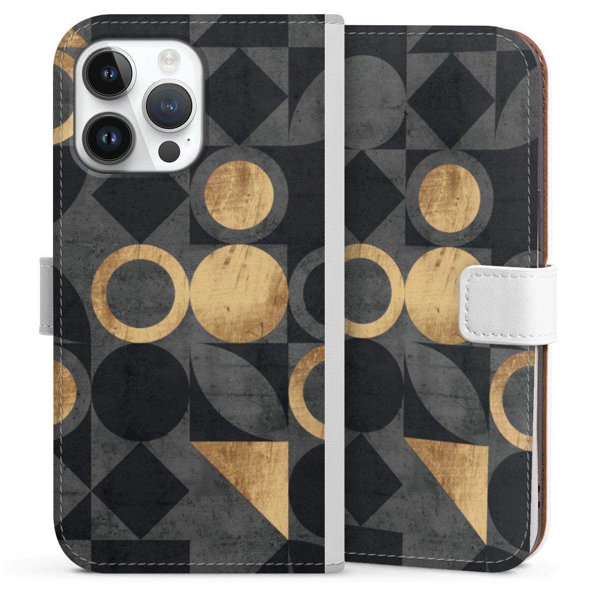 For our Sideflip Case we are using our advanced direct printing technology. The back and frontside are fully printabale, the inside of the phone bag is left unprinted. You can order the phone case without print, printed completely or also with a partial print.