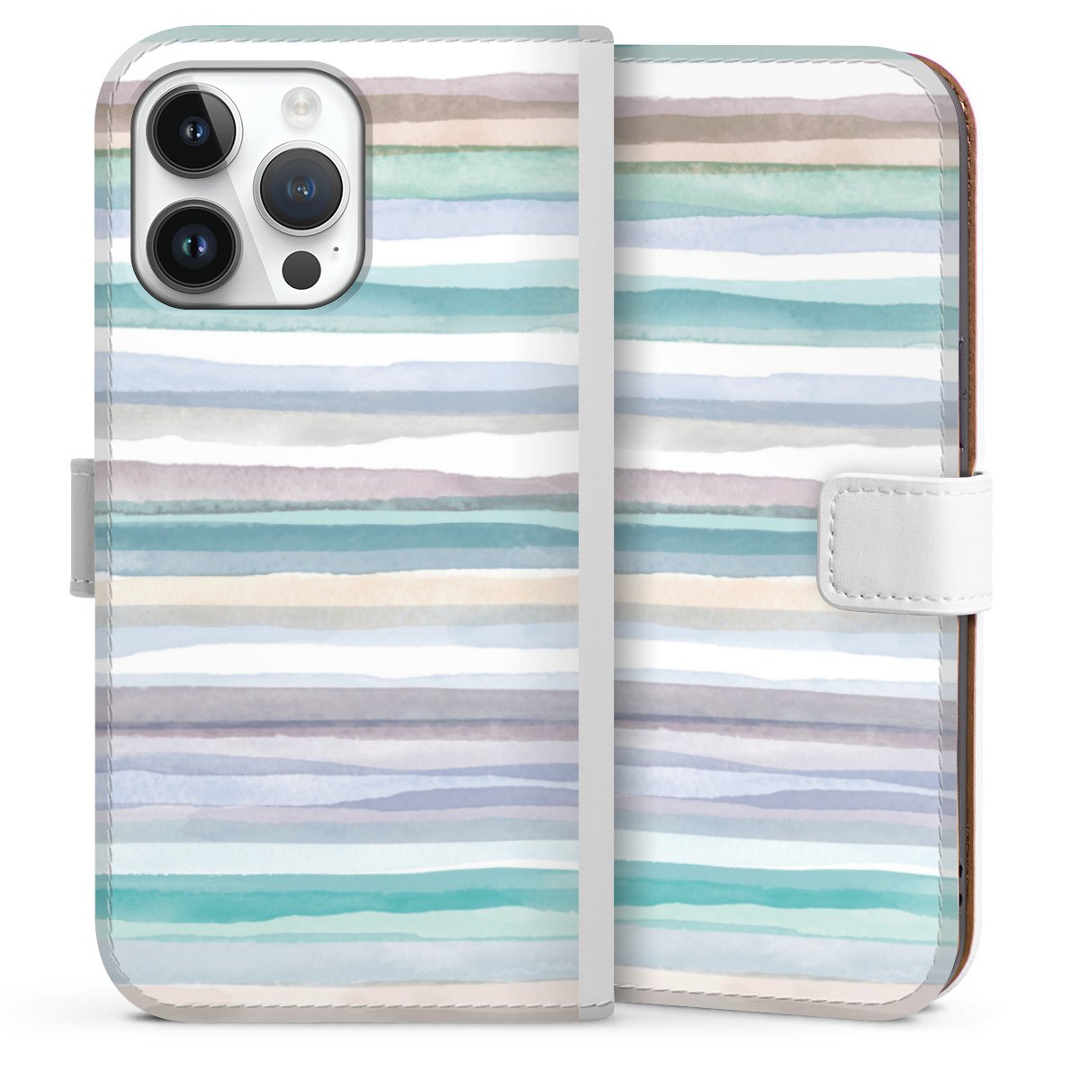 For our Sideflip Case we are using our advanced direct printing technology. The back and frontside are fully printabale, the inside of the phone bag is left unprinted. You can order the phone case without print, printed completely or also with a partial print.