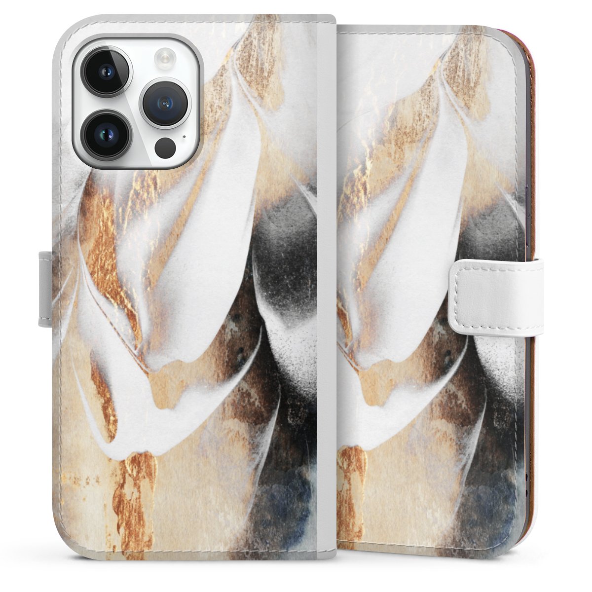 For our Sideflip Case we are using our advanced direct printing technology. The back and frontside are fully printabale, the inside of the phone bag is left unprinted. You can order the phone case without print, printed completely or also with a partial print.