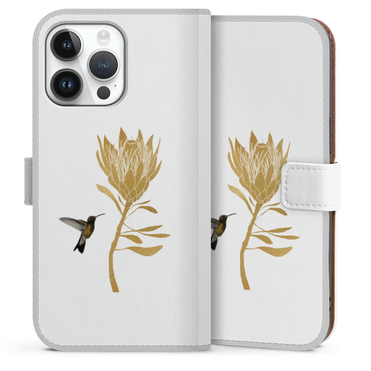 For our Sideflip Case we are using our advanced direct printing technology. The back and frontside are fully printabale, the inside of the phone bag is left unprinted. You can order the phone case without print, printed completely or also with a partial print.