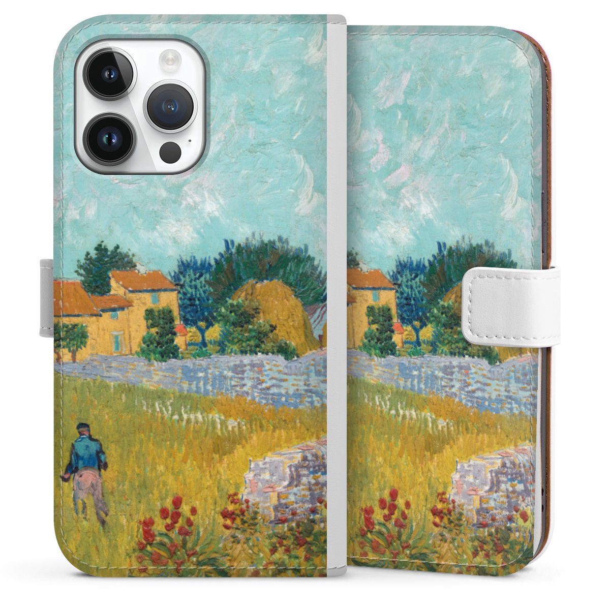 For our Sideflip Case we are using our advanced direct printing technology. The back and frontside are fully printabale, the inside of the phone bag is left unprinted. You can order the phone case without print, printed completely or also with a partial print.