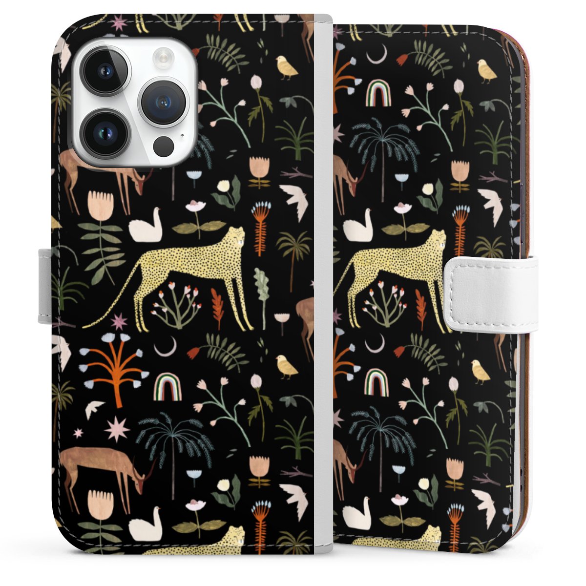 For our Sideflip Case we are using our advanced direct printing technology. The back and frontside are fully printabale, the inside of the phone bag is left unprinted. You can order the phone case without print, printed completely or also with a partial print.