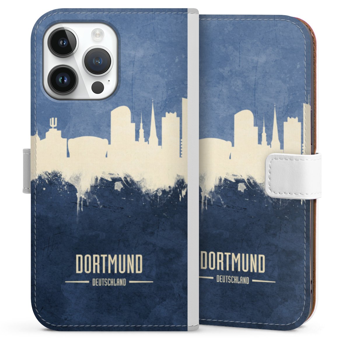 For our Sideflip Case we are using our advanced direct printing technology. The back and frontside are fully printabale, the inside of the phone bag is left unprinted. You can order the phone case without print, printed completely or also with a partial print.