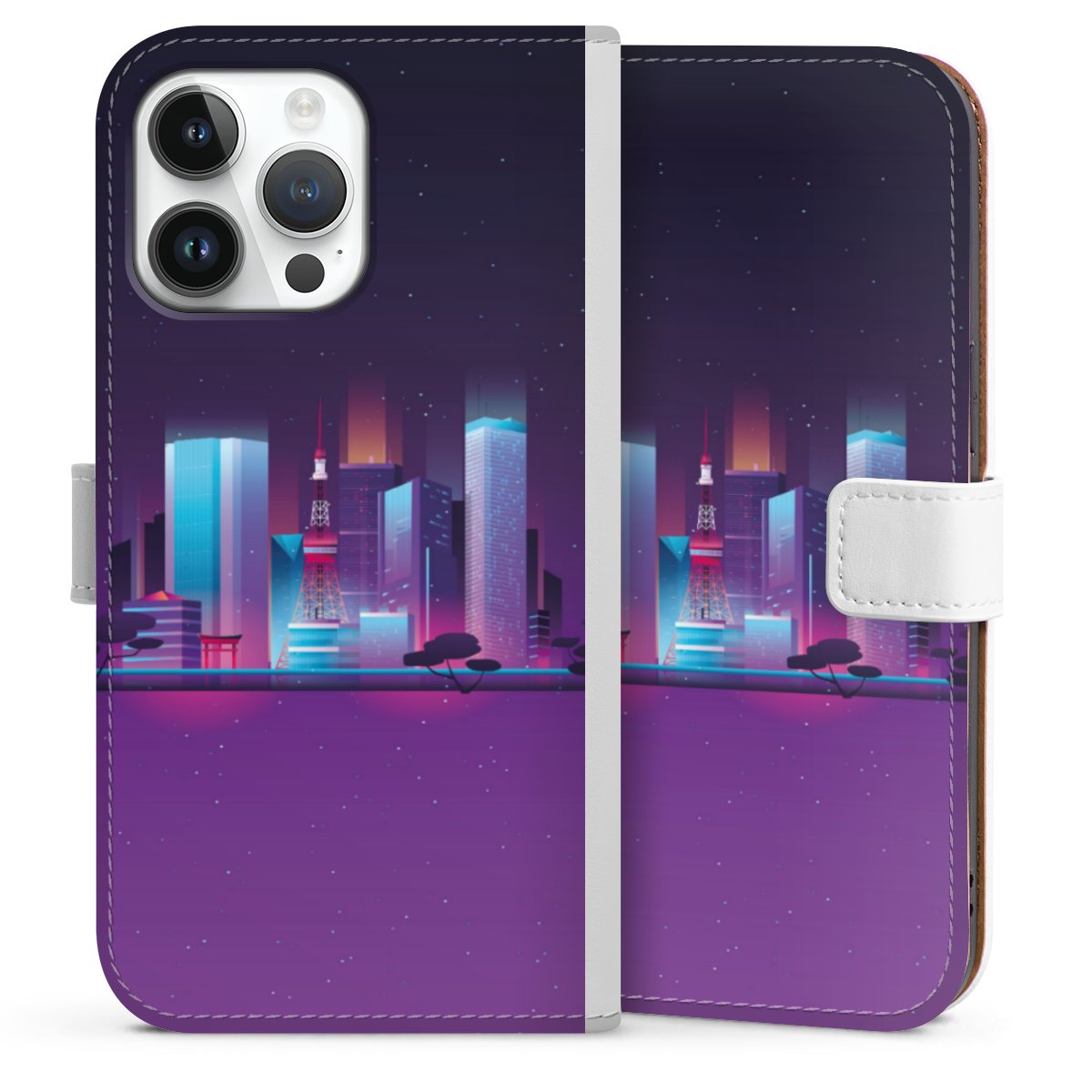 For our Sideflip Case we are using our advanced direct printing technology. The back and frontside are fully printabale, the inside of the phone bag is left unprinted. You can order the phone case without print, printed completely or also with a partial print.