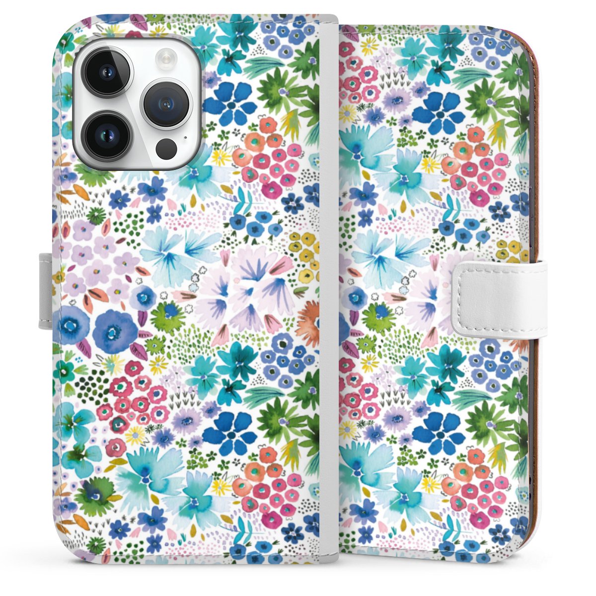 For our Sideflip Case we are using our advanced direct printing technology. The back and frontside are fully printabale, the inside of the phone bag is left unprinted. You can order the phone case without print, printed completely or also with a partial print.