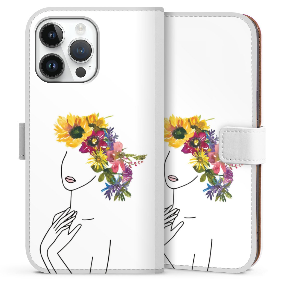 For our Sideflip Case we are using our advanced direct printing technology. The back and frontside are fully printabale, the inside of the phone bag is left unprinted. You can order the phone case without print, printed completely or also with a partial print.