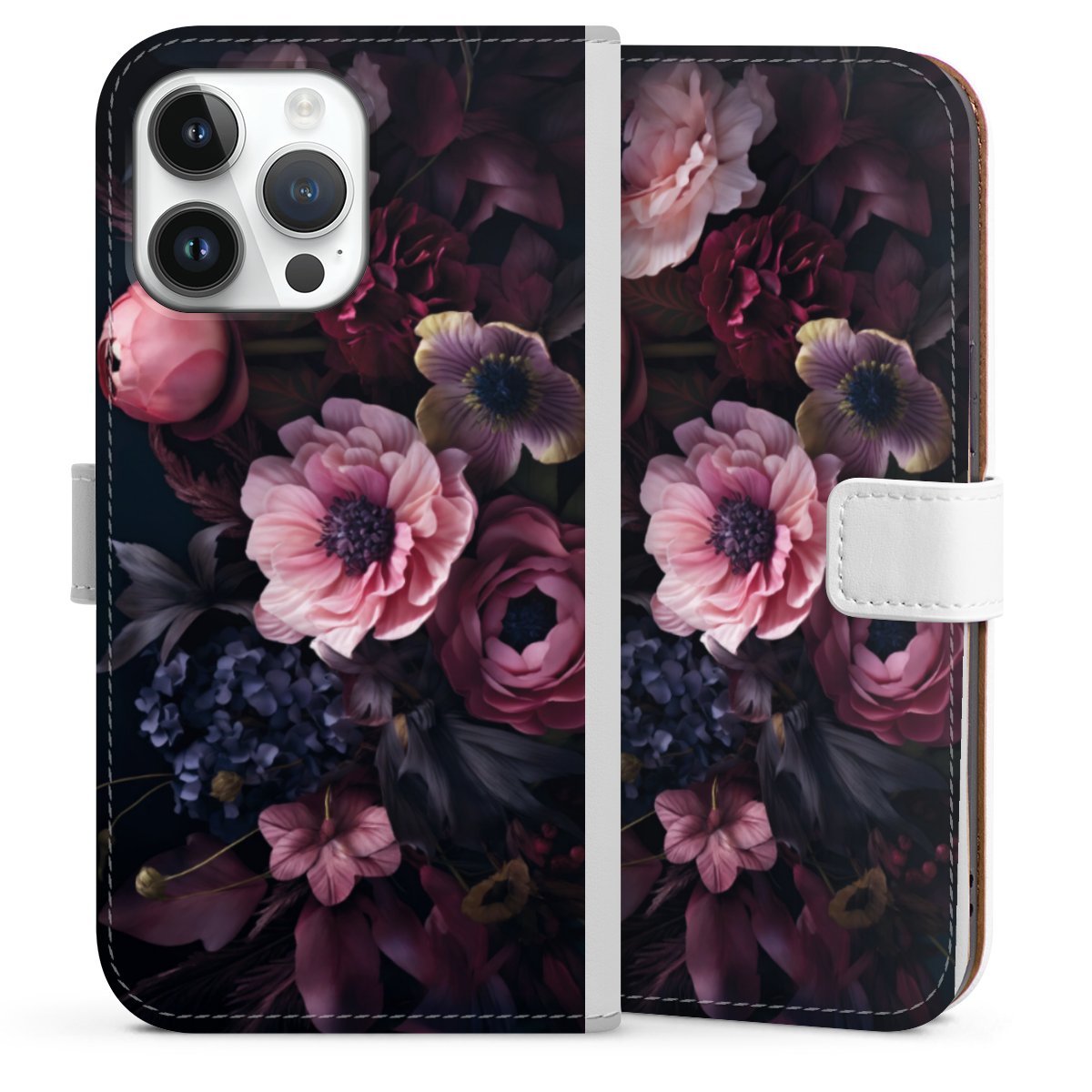 For our Sideflip Case we are using our advanced direct printing technology. The back and frontside are fully printabale, the inside of the phone bag is left unprinted. You can order the phone case without print, printed completely or also with a partial print.