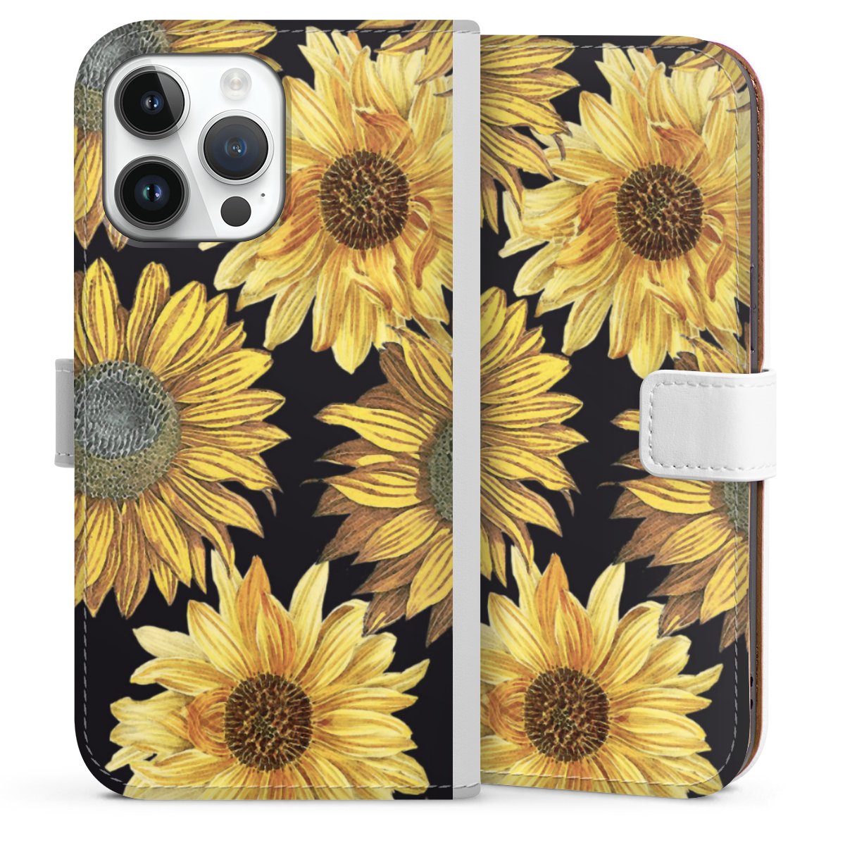 For our Sideflip Case we are using our advanced direct printing technology. The back and frontside are fully printabale, the inside of the phone bag is left unprinted. You can order the phone case without print, printed completely or also with a partial print.