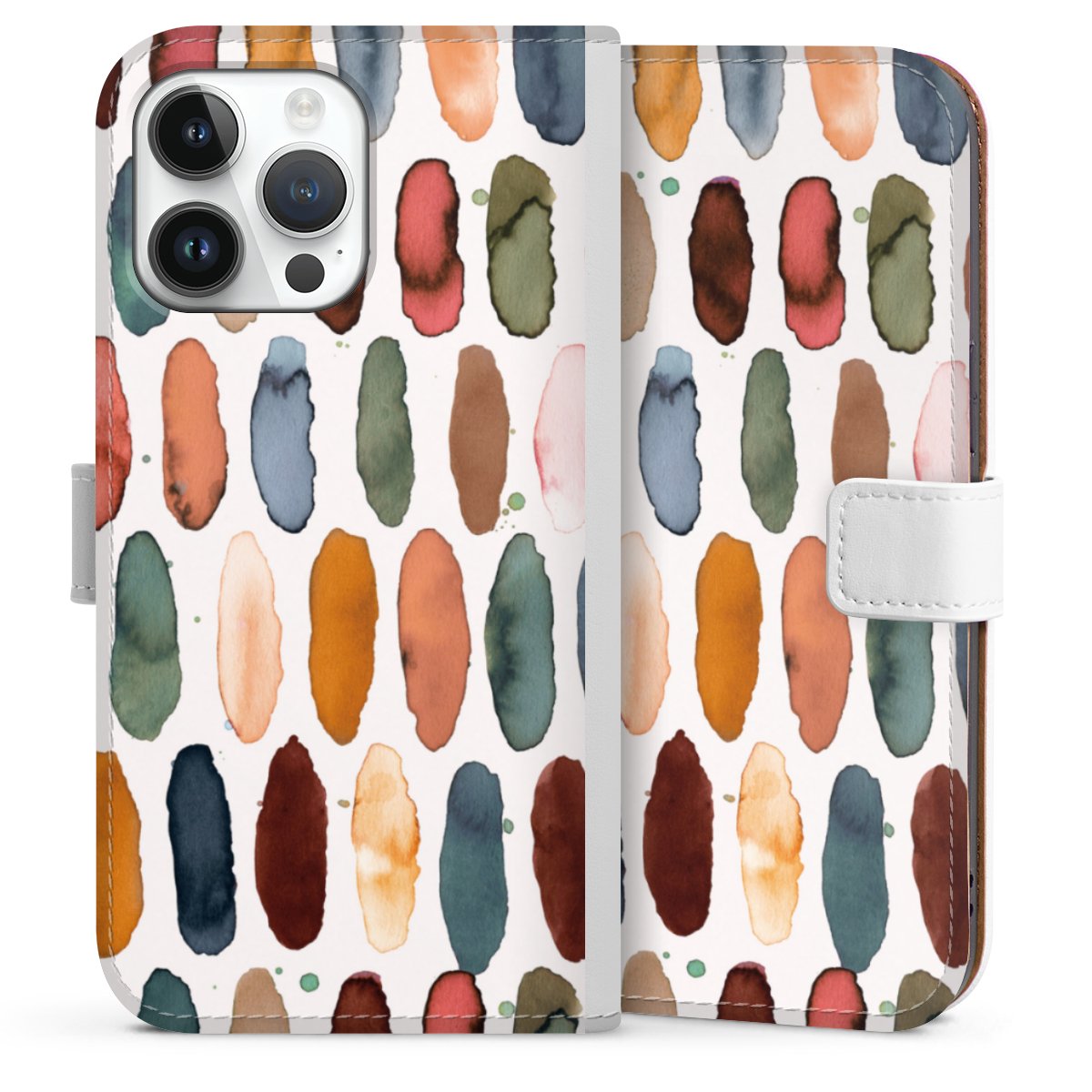 For our Sideflip Case we are using our advanced direct printing technology. The back and frontside are fully printabale, the inside of the phone bag is left unprinted. You can order the phone case without print, printed completely or also with a partial print.
