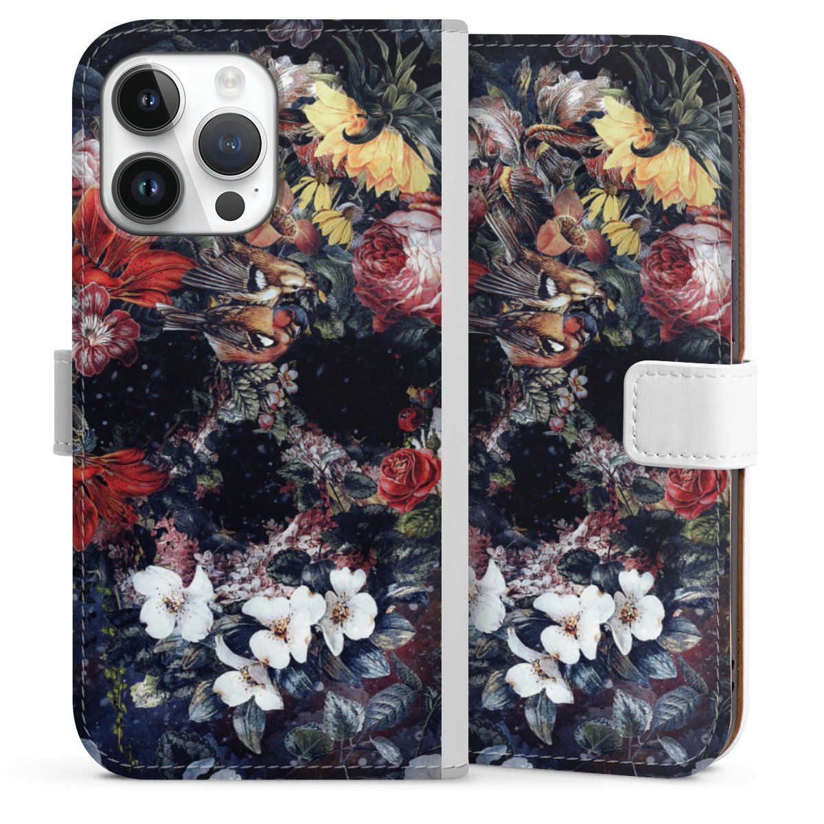 For our Sideflip Case we are using our advanced direct printing technology. The back and frontside are fully printabale, the inside of the phone bag is left unprinted. You can order the phone case without print, printed completely or also with a partial print.