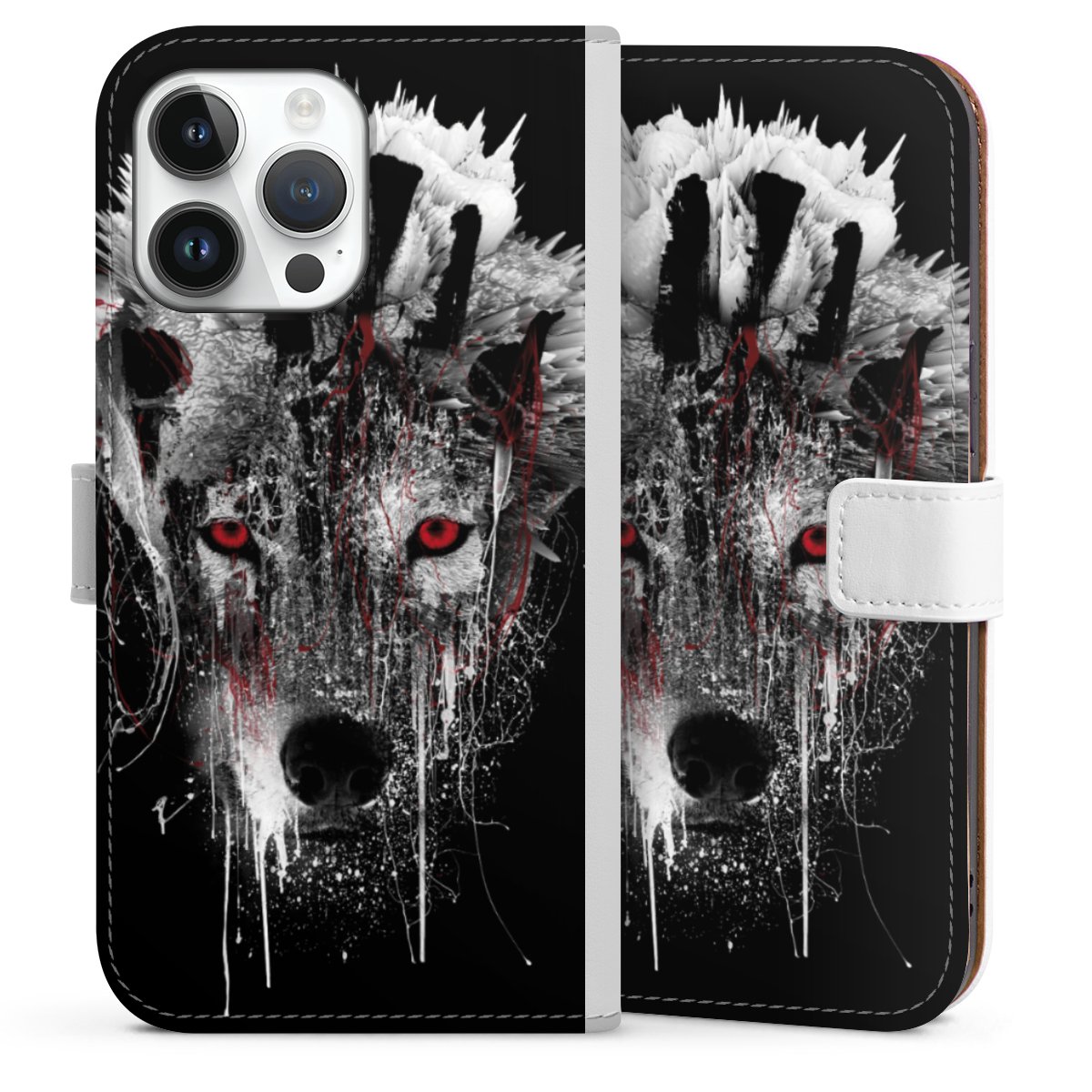 For our Sideflip Case we are using our advanced direct printing technology. The back and frontside are fully printabale, the inside of the phone bag is left unprinted. You can order the phone case without print, printed completely or also with a partial print.
