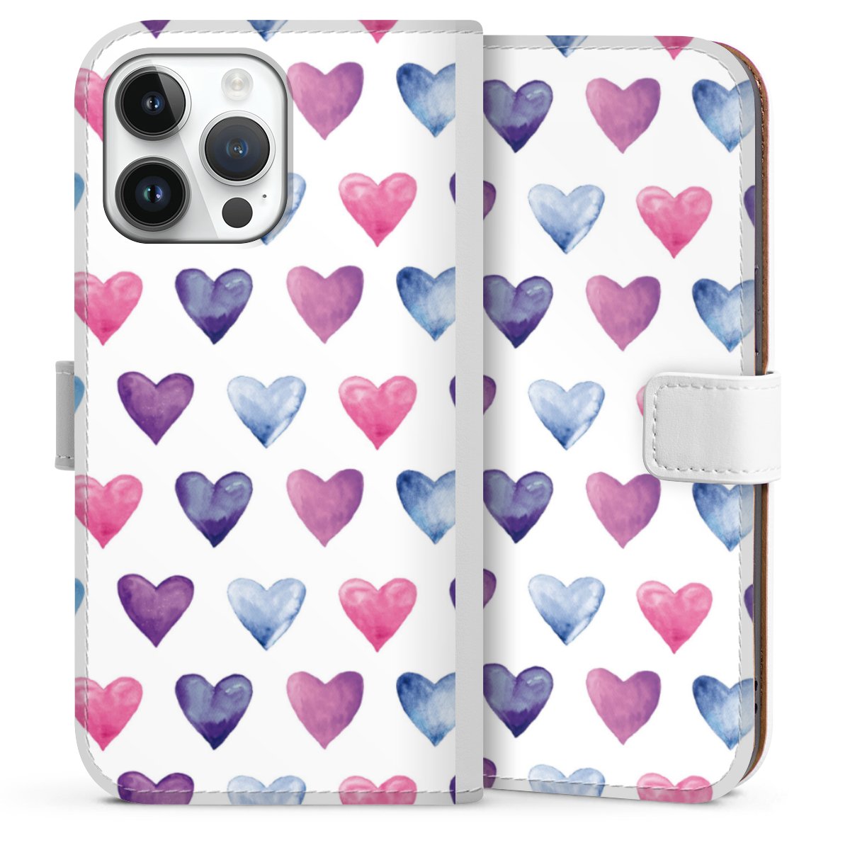 For our Sideflip Case we are using our advanced direct printing technology. The back and frontside are fully printabale, the inside of the phone bag is left unprinted. You can order the phone case without print, printed completely or also with a partial print.