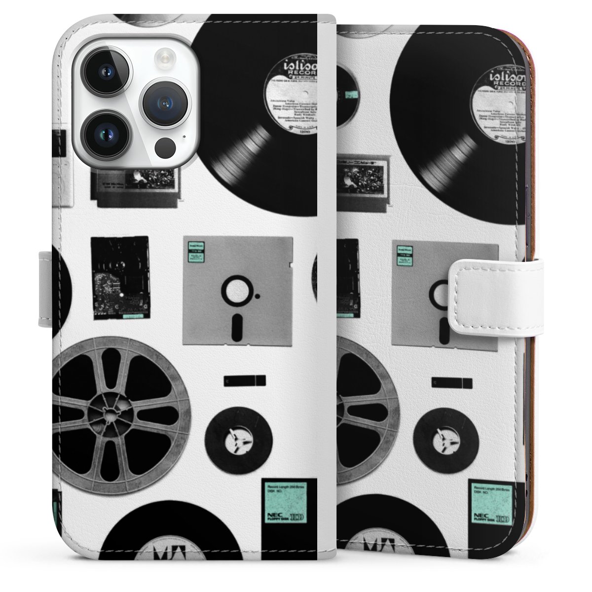For our Sideflip Case we are using our advanced direct printing technology. The back and frontside are fully printabale, the inside of the phone bag is left unprinted. You can order the phone case without print, printed completely or also with a partial print.