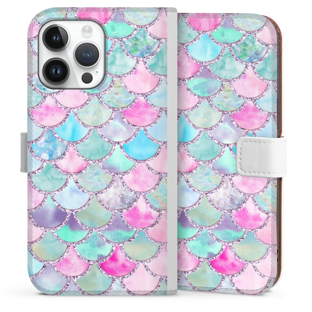 For our Sideflip Case we are using our advanced direct printing technology. The back and frontside are fully printabale, the inside of the phone bag is left unprinted. You can order the phone case without print, printed completely or also with a partial print.