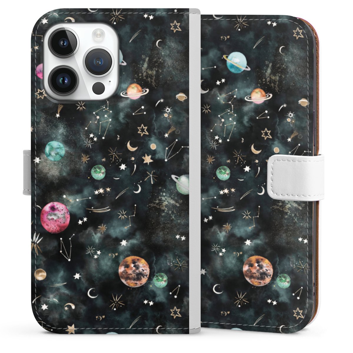 For our Sideflip Case we are using our advanced direct printing technology. The back and frontside are fully printabale, the inside of the phone bag is left unprinted. You can order the phone case without print, printed completely or also with a partial print.