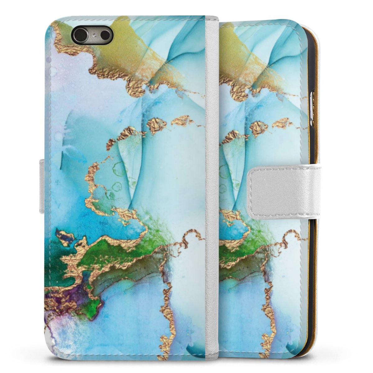 For our Sideflip Case we are using our advanced direct printing technology. The back and frontside are fully printabale, the inside of the phone bag is left unprinted. You can order the phone case without print, printed completely or also with a partial print.