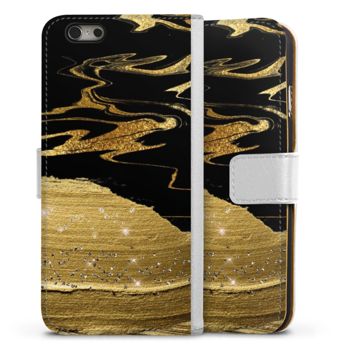 For our Sideflip Case we are using our advanced direct printing technology. The back and frontside are fully printabale, the inside of the phone bag is left unprinted. You can order the phone case without print, printed completely or also with a partial print.