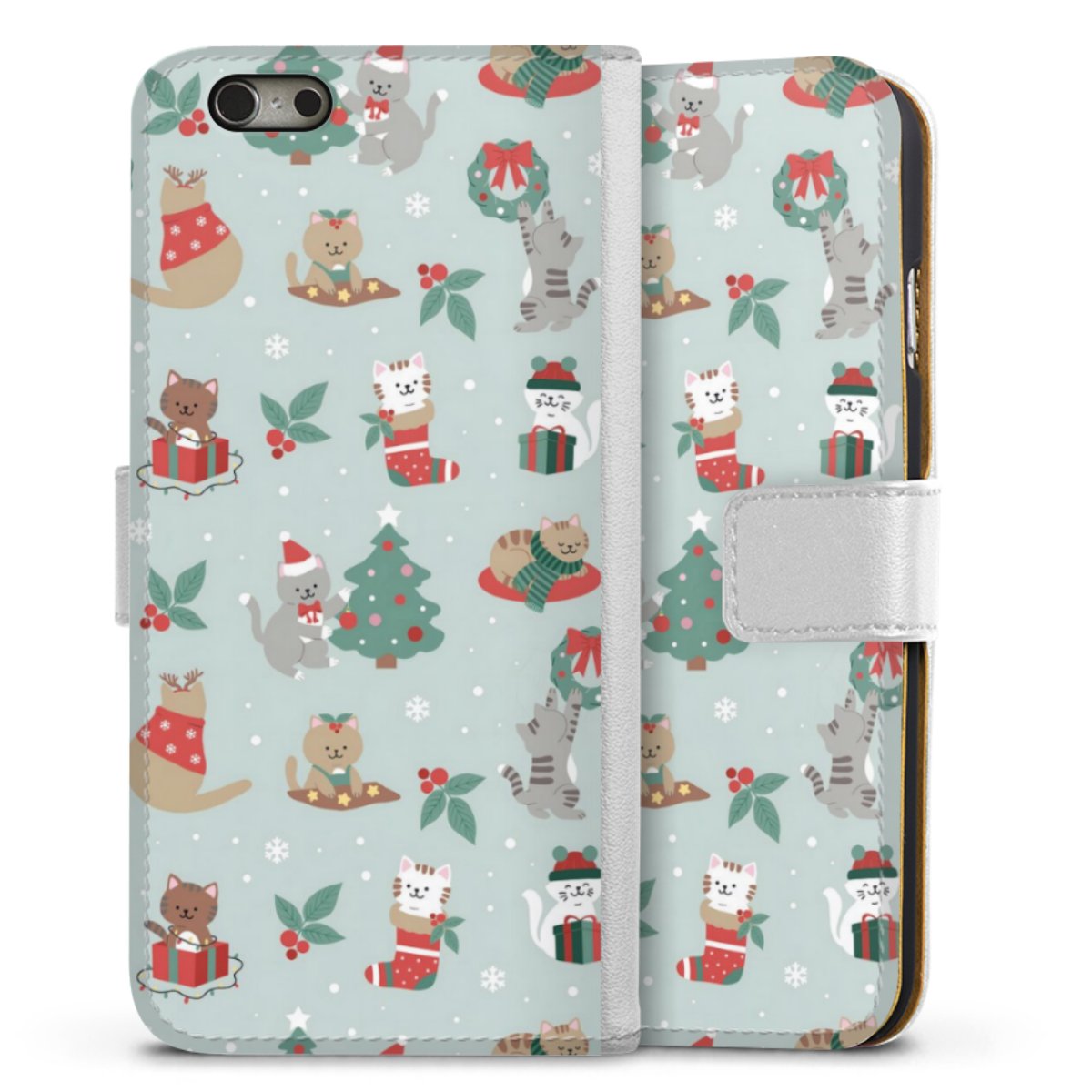Cute Winter Wonderland Christmas Festive Cats on Teal