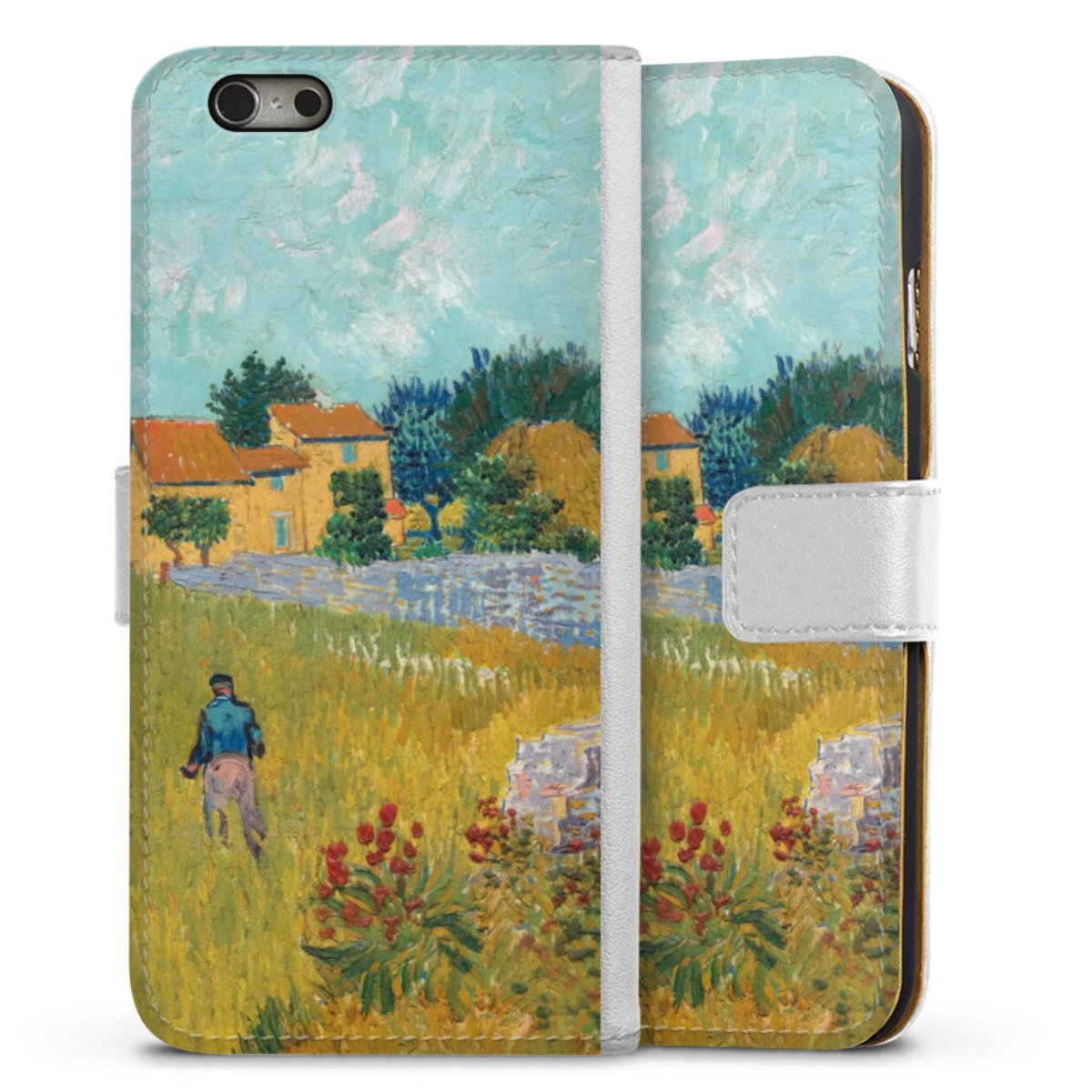 For our Sideflip Case we are using our advanced direct printing technology. The back and frontside are fully printabale, the inside of the phone bag is left unprinted. You can order the phone case without print, printed completely or also with a partial print.