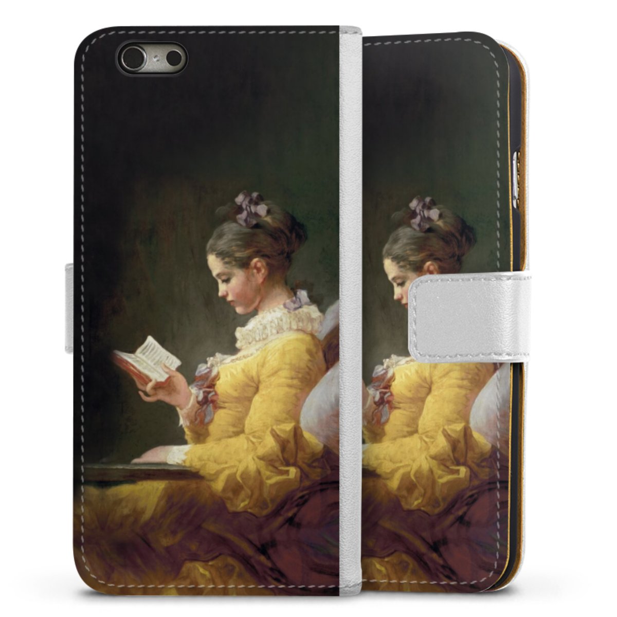 For our Sideflip Case we are using our advanced direct printing technology. The back and frontside are fully printabale, the inside of the phone bag is left unprinted. You can order the phone case without print, printed completely or also with a partial print.