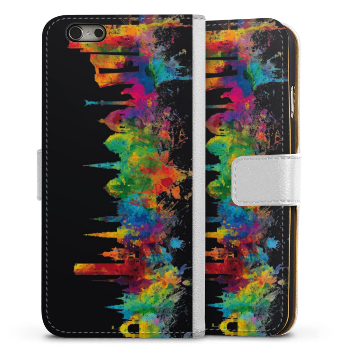 For our Sideflip Case we are using our advanced direct printing technology. The back and frontside are fully printabale, the inside of the phone bag is left unprinted. You can order the phone case without print, printed completely or also with a partial print.