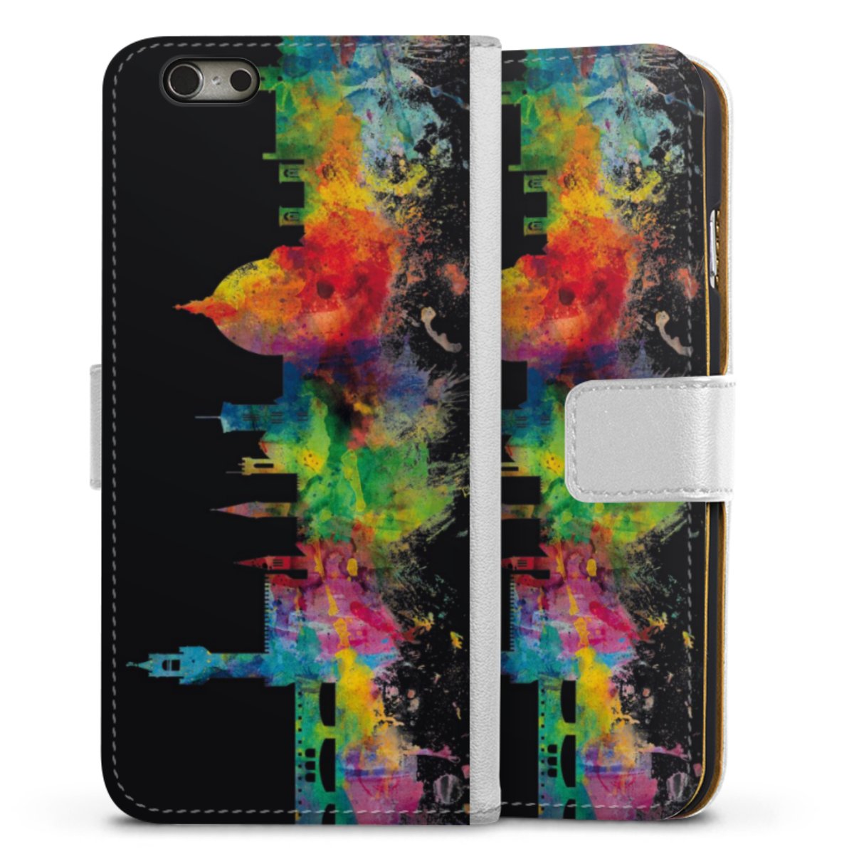 For our Sideflip Case we are using our advanced direct printing technology. The back and frontside are fully printabale, the inside of the phone bag is left unprinted. You can order the phone case without print, printed completely or also with a partial print.