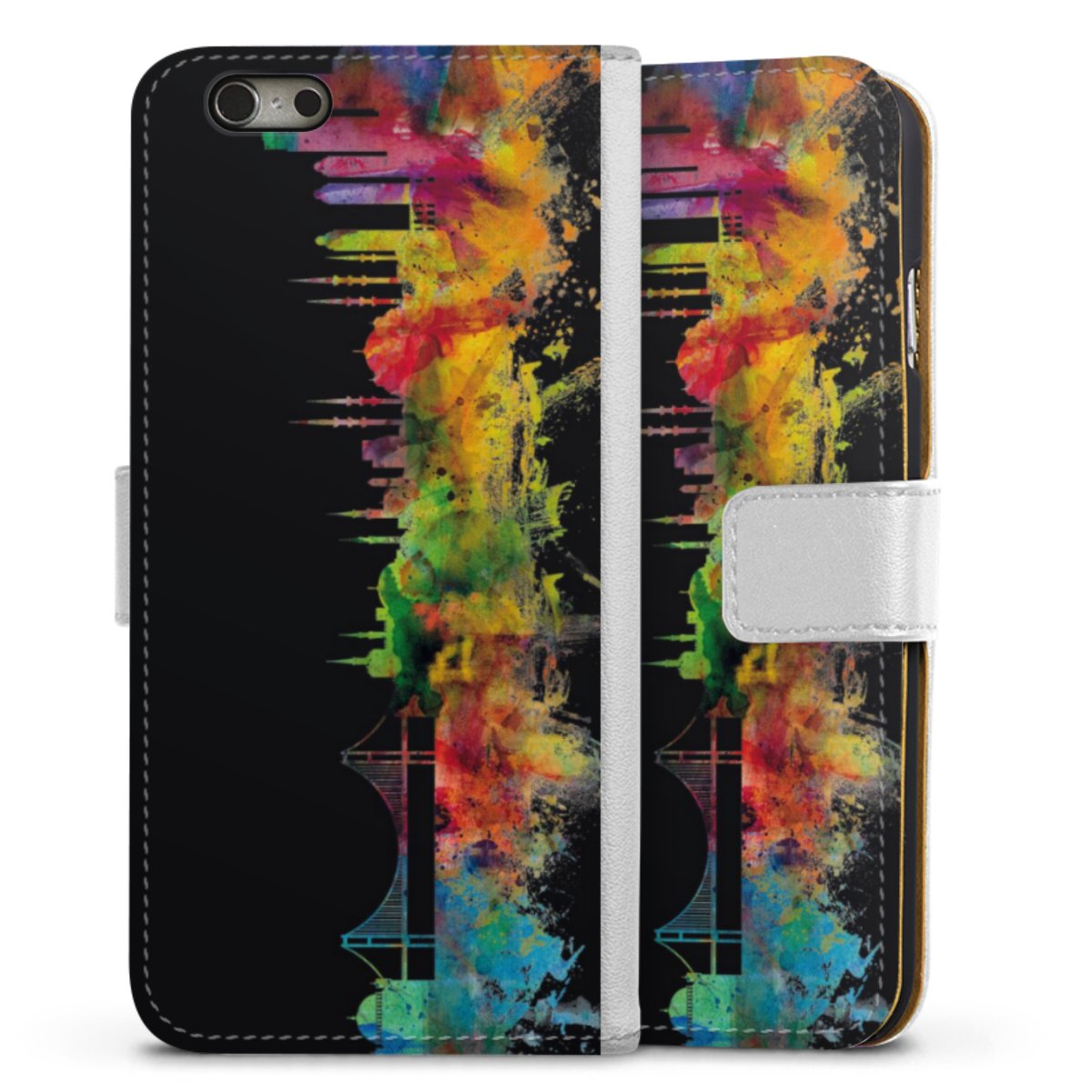 For our Sideflip Case we are using our advanced direct printing technology. The back and frontside are fully printabale, the inside of the phone bag is left unprinted. You can order the phone case without print, printed completely or also with a partial print.