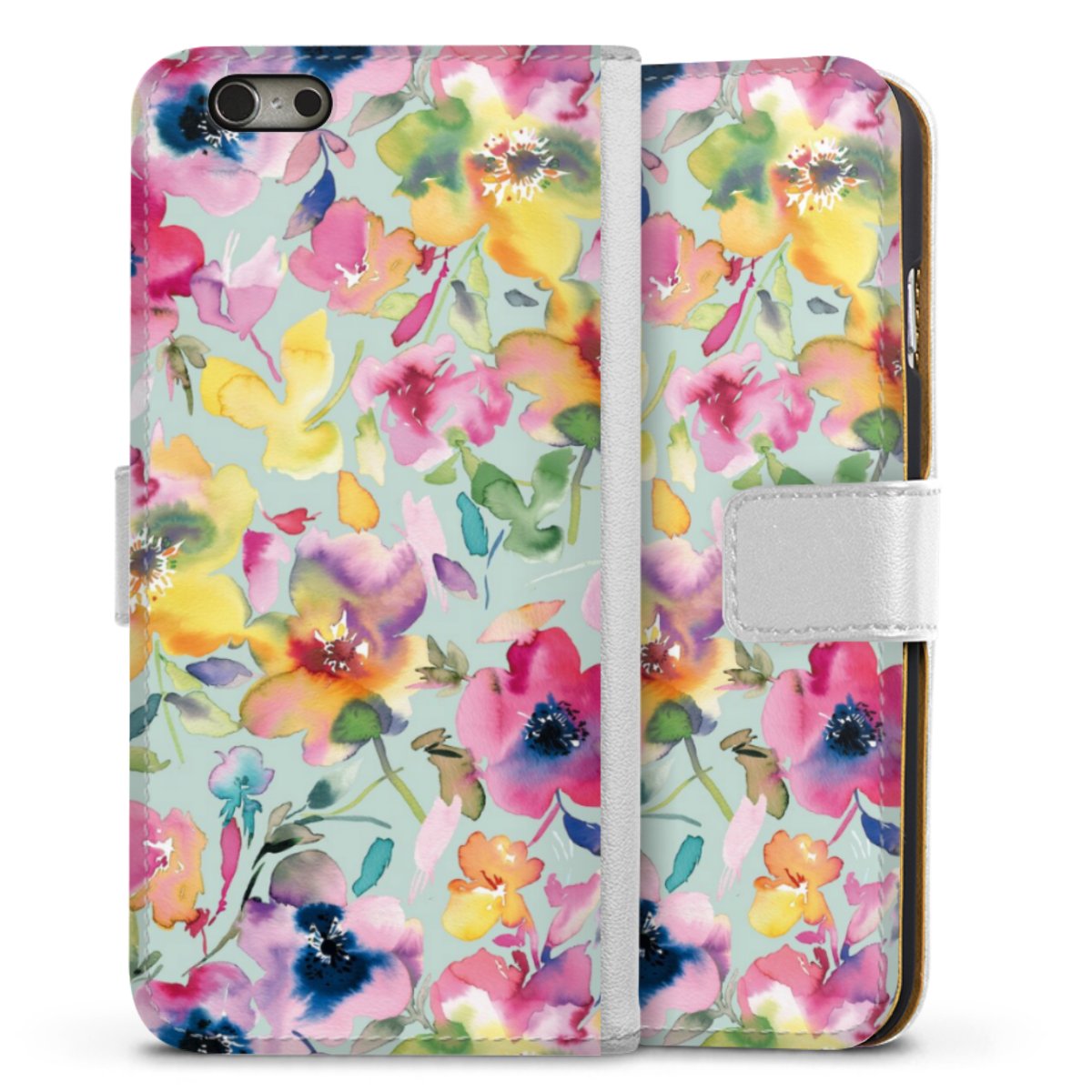 For our Sideflip Case we are using our advanced direct printing technology. The back and frontside are fully printabale, the inside of the phone bag is left unprinted. You can order the phone case without print, printed completely or also with a partial print.