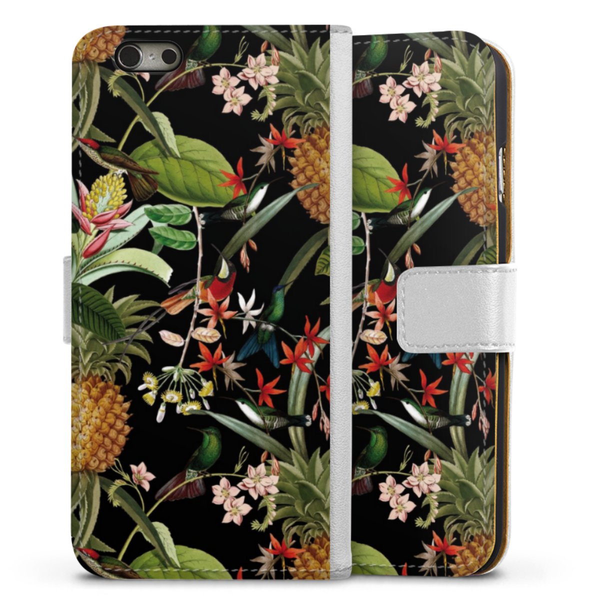 For our Sideflip Case we are using our advanced direct printing technology. The back and frontside are fully printabale, the inside of the phone bag is left unprinted. You can order the phone case without print, printed completely or also with a partial print.