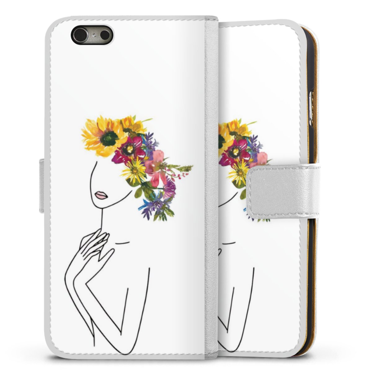 For our Sideflip Case we are using our advanced direct printing technology. The back and frontside are fully printabale, the inside of the phone bag is left unprinted. You can order the phone case without print, printed completely or also with a partial print.