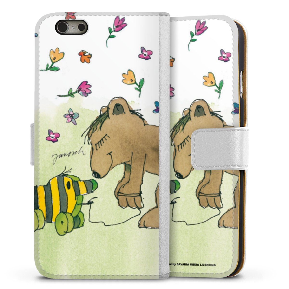 For our Sideflip Case we are using our advanced direct printing technology. The back and frontside are fully printabale, the inside of the phone bag is left unprinted. You can order the phone case without print, printed completely or also with a partial print.