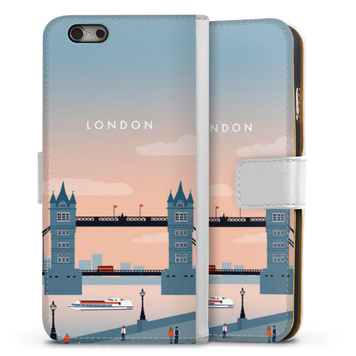 For our Sideflip Case we are using our advanced direct printing technology. The back and frontside are fully printabale, the inside of the phone bag is left unprinted. You can order the phone case without print, printed completely or also with a partial print.