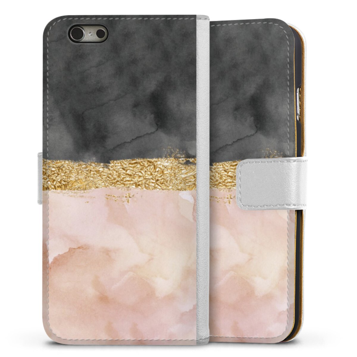 For our Sideflip Case we are using our advanced direct printing technology. The back and frontside are fully printabale, the inside of the phone bag is left unprinted. You can order the phone case without print, printed completely or also with a partial print.