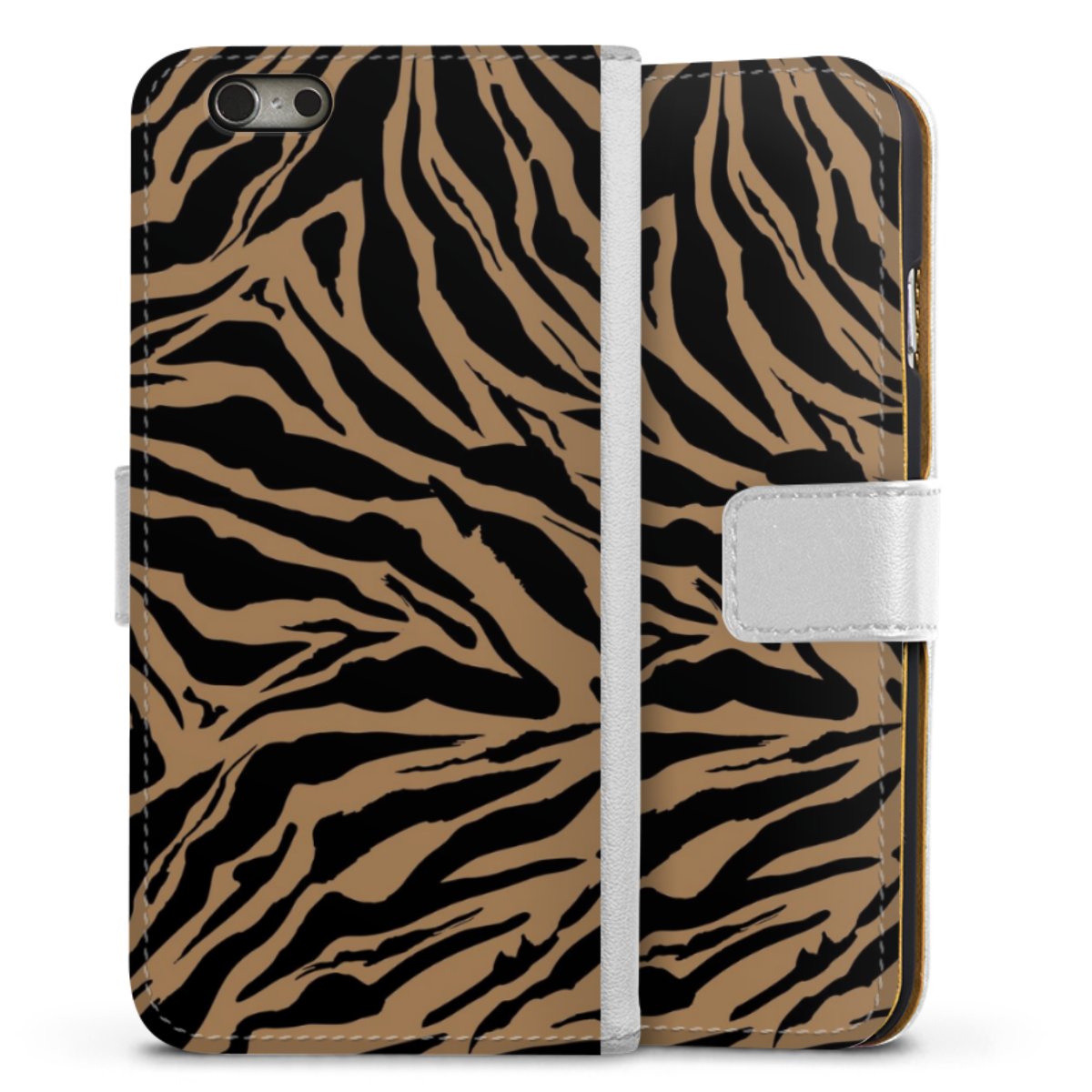 For our Sideflip Case we are using our advanced direct printing technology. The back and frontside are fully printabale, the inside of the phone bag is left unprinted. You can order the phone case without print, printed completely or also with a partial print.