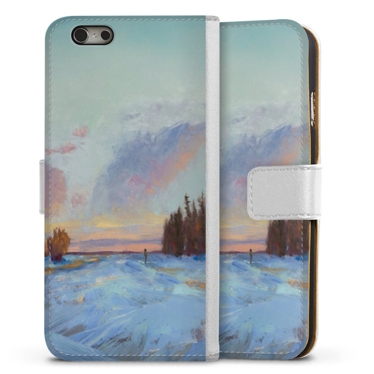 For our Sideflip Case we are using our advanced direct printing technology. The back and frontside are fully printabale, the inside of the phone bag is left unprinted. You can order the phone case without print, printed completely or also with a partial print.