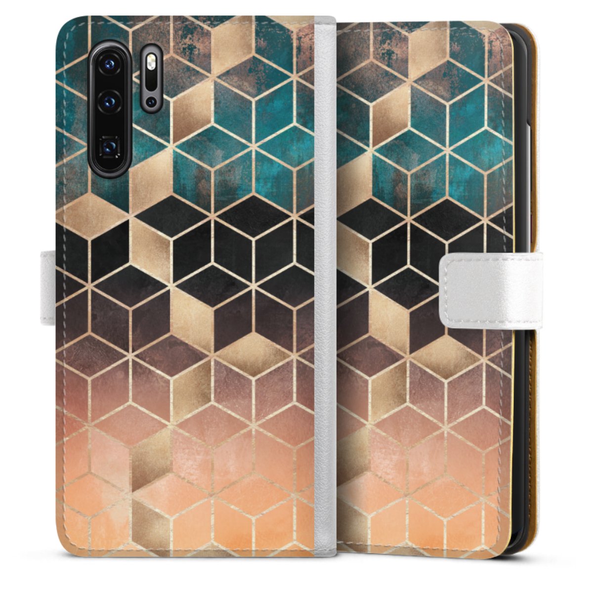For our Sideflip Case we are using our advanced direct printing technology. The back and frontside are fully printabale, the inside of the phone bag is left unprinted. You can order the phone case without print, printed completely or also with a partial print.