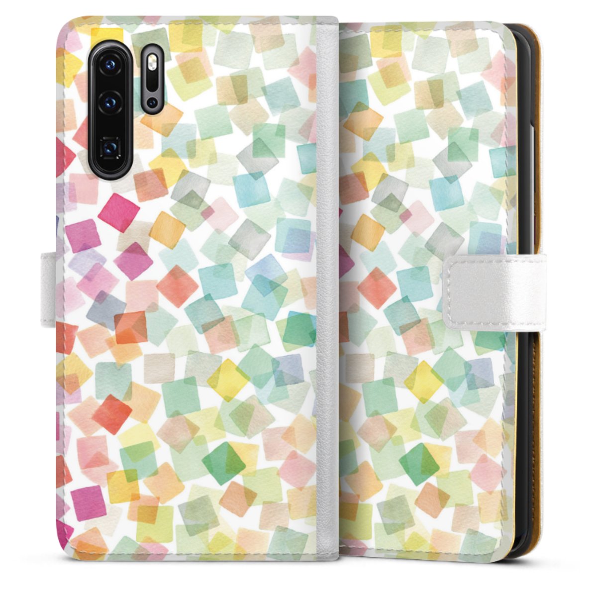 For our Sideflip Case we are using our advanced direct printing technology. The back and frontside are fully printabale, the inside of the phone bag is left unprinted. You can order the phone case without print, printed completely or also with a partial print.
