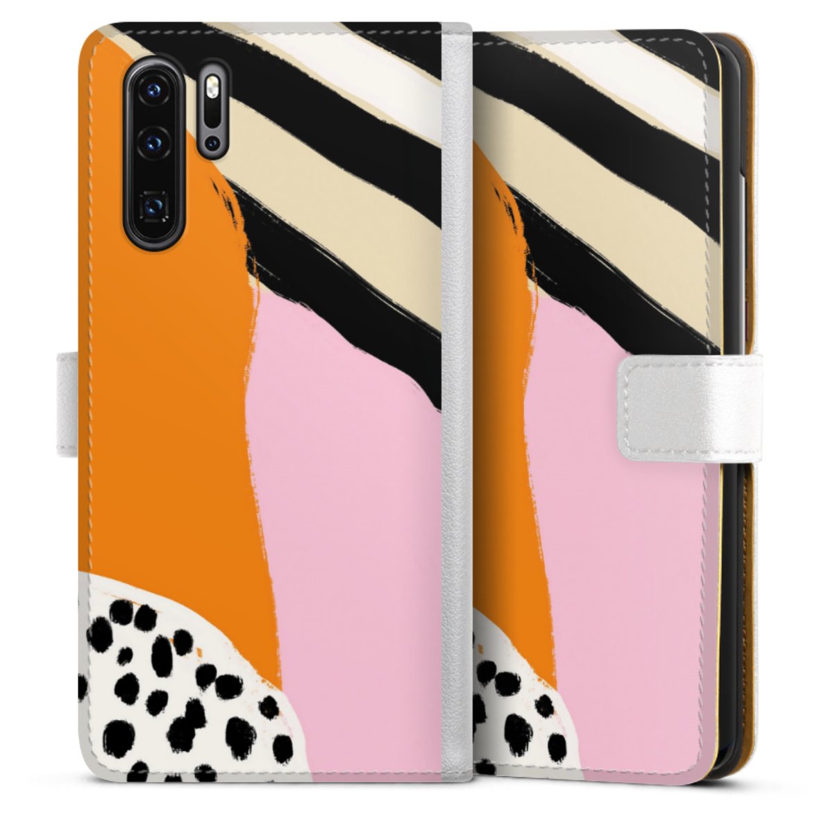 For our Sideflip Case we are using our advanced direct printing technology. The back and frontside are fully printabale, the inside of the phone bag is left unprinted. You can order the phone case without print, printed completely or also with a partial print.