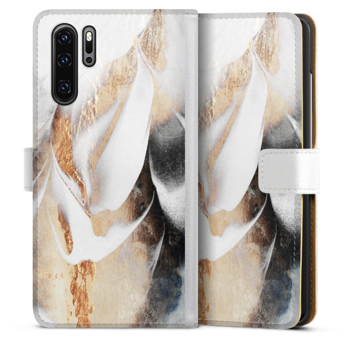 For our Sideflip Case we are using our advanced direct printing technology. The back and frontside are fully printabale, the inside of the phone bag is left unprinted. You can order the phone case without print, printed completely or also with a partial print.